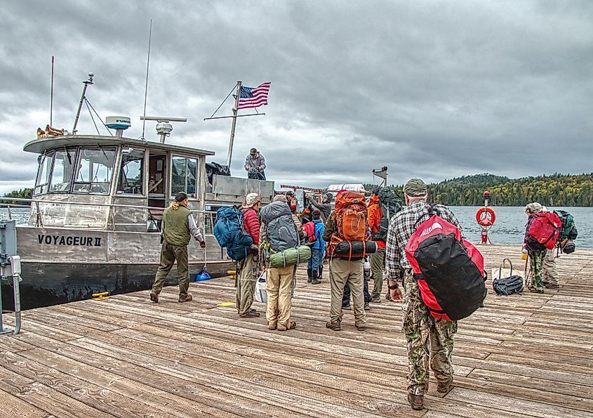 アイル・ロイヤル国立公園へ向かうためにフェリーに乗るハイカーたち。