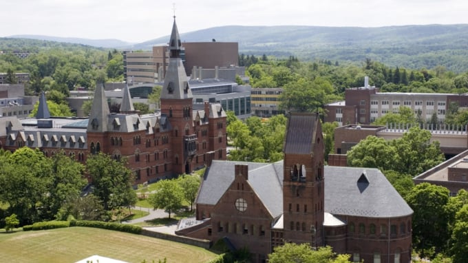 おそらく、イサカは、アイビー リーグの名門大学の 1 つであるコーネル大学の本拠地であることで最もよく知られています。この大学をイサカ滞在中の完璧な観光地にしているのは、そのユニークで折衷的な建築です。このキャンパスは、イサカ市とカユーガ湖を見渡す丘の上にあることで有名です。その建物のいくつかは国家歴史登録財に登録されており、華やかなゴシック様式、ビクトリア朝様式、新古典主義建築の影響をうまく融合させています。これに加えて、観光客は第一次世界大戦記念碑やハーバート F. ジョンソン美術館で観光や学習を楽しむことができます。