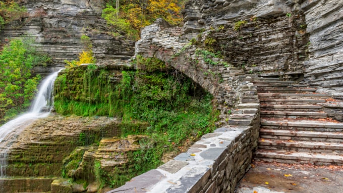 ルシファー滝は、イサカのトレマン州立公園の観光名所の 1 つです。 1,100 エーカーの公園には、数多くの滝やハイキング コースがあります。天然のプールと狭い渓谷がエリア全体に点在しています。これで公園全体は往復7.2kmのハイキングになります。イサカのこの地域にある有名な滝の一つに、ルシファー滝があります。それは多層の115フィートです。高く流れ落ちる滝。公園の西側から短いハイキングでアクセスできます。このほか、峡谷のトレイルやイサカの街からも滝の美しい景色を楽しむことができます。