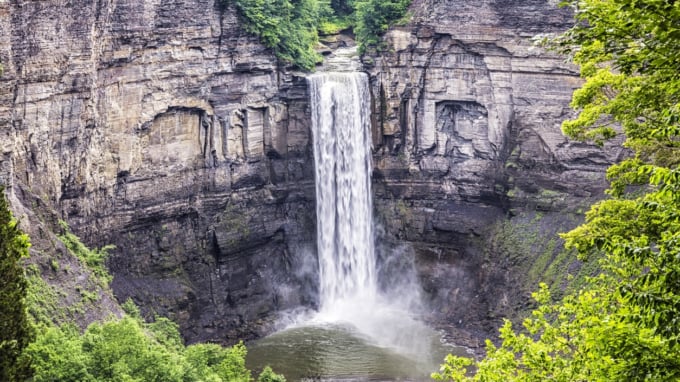 タガノック フォールズ州立公園は、ニューヨーク州トンプキンス郡にある 750 エーカーの公園で、イサカから車で 20 分です。この公園の主な目玉は、高さ 215 フィートの高さから透明な水を落とすタガノック滝です。これにより、ロッキー山脈の東で最も高い一滴の滝として有名です。この州立公園は、この地域には長いハイキング コースが点在し、ユニークな植物や野生生物が豊富に存在するため、自然愛好家とイサカを訪れるハイカーの両方にとって完璧な観光地です。