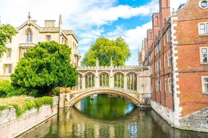 Bridge of Sighs は、ケンブリッジ大学セント ジョンズ カレッジの裏手にあります。ヴェネツィアの有名な橋にちなんで名付けられた、この美しい屋根付き石橋は必見です。ヴィクトリア女王自身も「絵画にふさわしい橋」と称賛した。ケム川に沿ってパントに乗ると、橋の素晴らしい景色を眺めることができます。