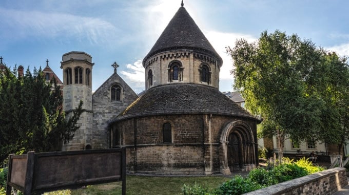 ラウンド教会は、ケンブリッジ大学セントジョンズカレッジの斜め向かいにある円形の教会です。教会と呼ばれていますが、実際にはケンブリッジの観光情報を提供するビジターセンターです。