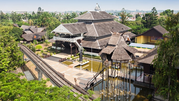 列島の多様でユニークな文化の建物や史跡を展示するこのミニチュア博物館は、あまり旅行する時間がなくてもこの国の雰囲気を味わいたい人にとっては最適な場所です。インドネシアのさまざまな州を表す 27 の異なるエリアがあり、その地域の文化と歴史に焦点を当てています。公園の中心には、インドネシアの島々のミニチュア版が描かれた人造湖があり、公園を横切るケーブルカーから見ることができます。