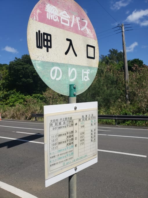 「Inutabu」バス停をInutabu Capeに最も近い停留所と間違えるかもしれませんが、最も近い停留所は、実際には「ケープ入り口」(Iriguchi Misaki Iriguchi)のバス停です。