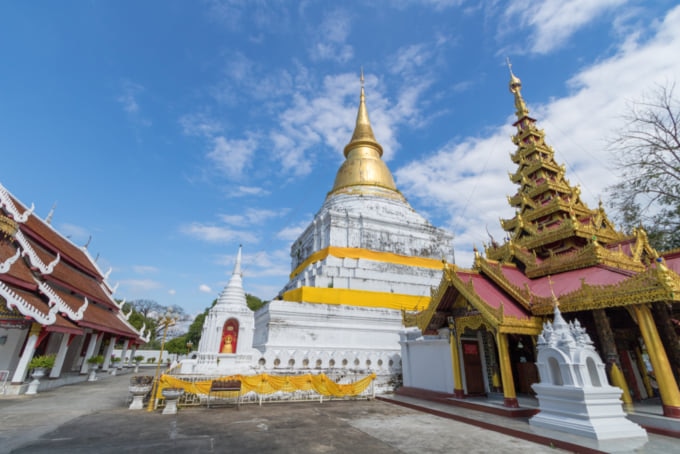 20 世紀にビルマ移民によってワン川の南岸に建立されたビルマ寺院です。この寺院は美しい建築と工芸品で有名で、完成までに 7 年かかりました。ここにはビルマの工芸品が施された最も複雑なチーク材のヴィハーラがあり、インドラの場所と名付けられています。ヴィハーンではマンダレー様式の仏像が数多く作られています。この寺院の主な見どころは、その建築物、チーク材の仏塔、シャン様式の仏塔、敷地内のその他の記念碑です。入場は無料です。