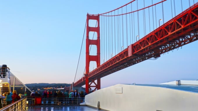 風光明媚なクルーズの下からゴールデンゲートブリッジをご覧ください