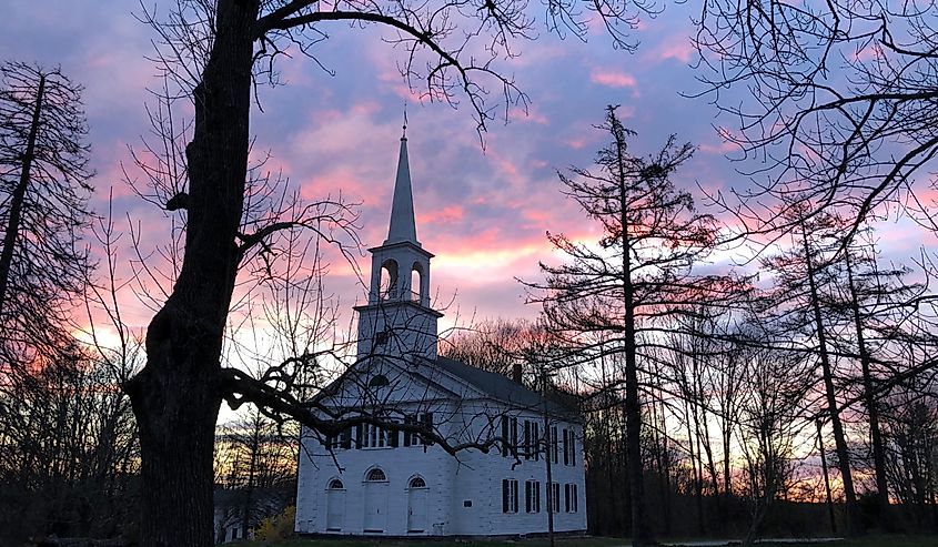 コネチカット州イーストパトナムの旧教会での日の出。 Shutterstock経由の画像クレジットPhil Barden