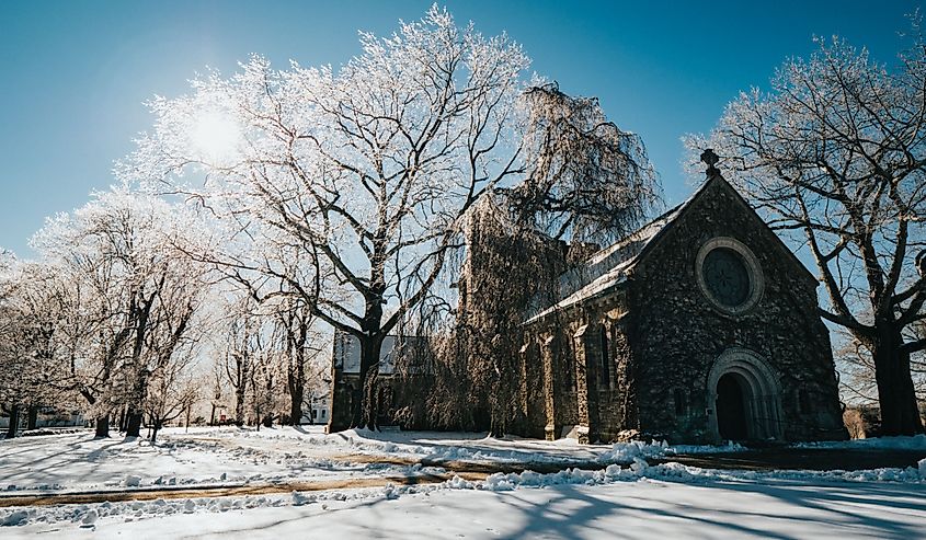 氷の嵐の間、コネチカット州ポンフレットのクラークチャペル。 Shutterstock経由の画像クレジットJamey McSweeney