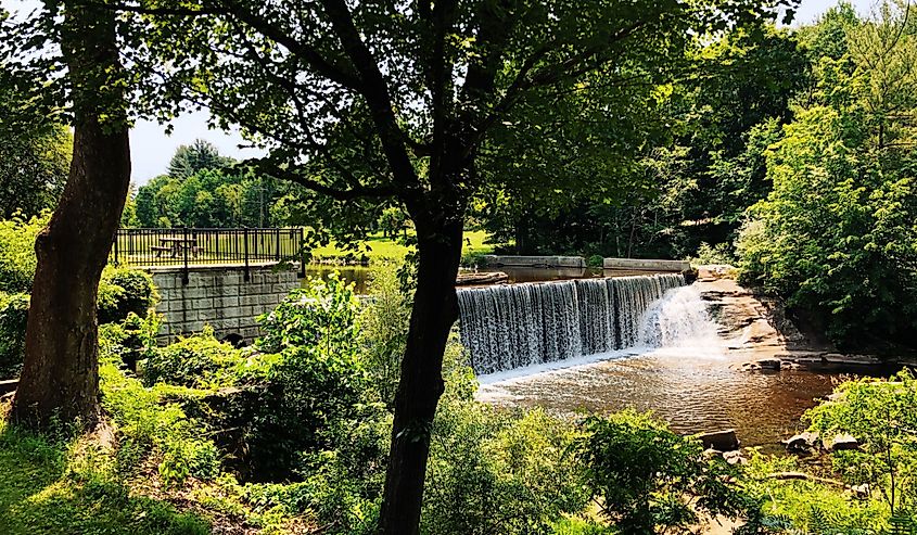 コネチカット州ノースカナンの町にあるベックリー鉄の炉のブラックベリーリバーダム。 ShutterStock経由の画像クレジットShanshan0312