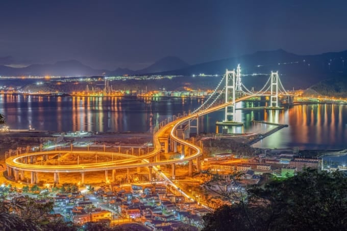 夜、照らされた橋はまったく異なる魅力を提示します。これは、昼と夜までに2つの異なる景色を楽しむことができる観光スポットです。 Hakucho Bridgeを見るにはいくつかのスポットがありますが、この展望台は、そのスケールアップを真に近づけるのに最適な場所です。
