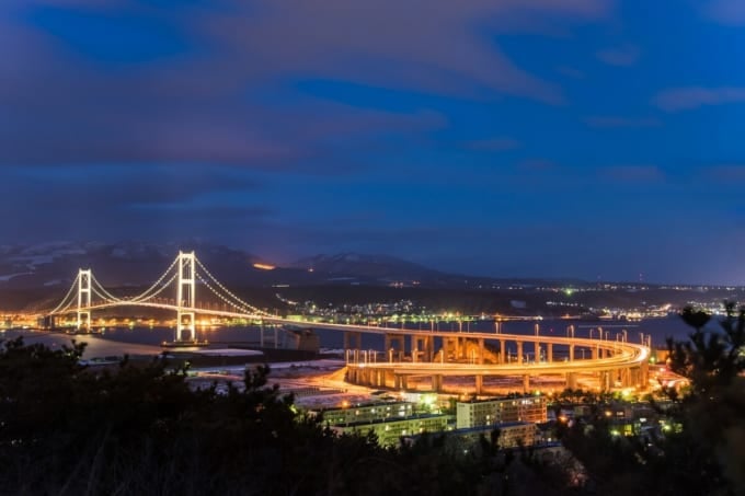 ムロランの象徴的な観光スポット、ハクチョ橋は、ムロラン港に及ぶ見事なサスペンションブリッジです。 1998年に自動車専用の国道(ルート37)として完成し、日本東部で最も長い吊り橋であり、合計約1,380メートルです。それは国道であるため、交差するための料金はありません。