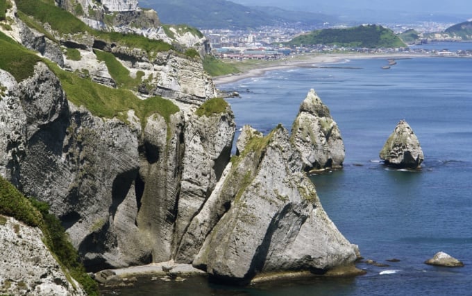 海岸沿いのチキュ岬の北東には、一連の劇的な崖とユニークな岩があります。これらの中で、Tokkarishoは、その珍しい岩層で知られる人気の景色の良い場所として際立っています。名前は、「シールロック」を意味するアイヌワード「Tokar-Isho」に由来します。