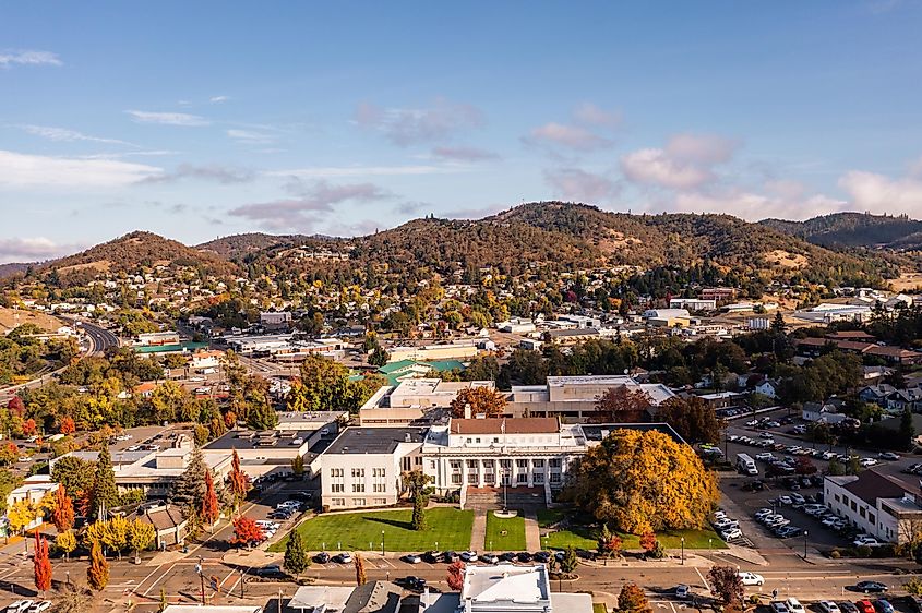オレゴン州アッシュランドの空撮。