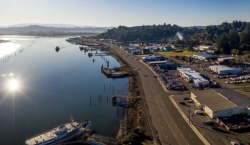 オレゴン州クーズベイの空撮。画像提供:Manuela Durson、Shutterstock経由