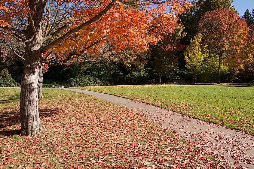 オレゴン州アッシュランドのリスアパークの穏やかな秋の風景。
