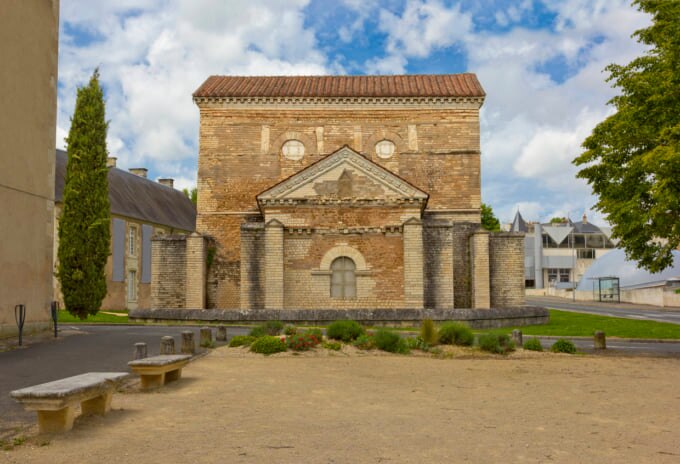 360 年頃に最初の形で建てられたポワティエの聖ヨハネ洗礼堂は、現存するフランス最古のキリスト教記念碑の 1 つです。しかし、その後大きく改修され、残っている建物のほとんどは 8 ~ 9 世紀のものであり、非常に古いままであることに同意されるでしょう。それはラテン十字の計画を持つ建物で、小さな装置で建てられ、その壁の外側は応用ペディメントを支えるピラスターで装飾されています。内部には 11 世紀から 12 世紀の興味深い壁画が保存されています。