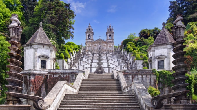 ポルトガルのブラガの都市の丘の上にそびえ立つボム・イエス・ド・モンテは、教会まで381フィートのジグザグである信じられないほどのバロック様式の階段で有名です。美しい階段とは別に、修道院の建築は壮観であり、多くの絵のように美しい噴水や彫像が地面に点在しており、チェックアウトする価値があります。