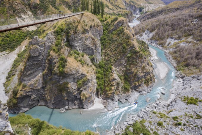 ニュージーランドは、バンジージャンプなどのさまざまな体力を消耗するアクティビティを楽しむのに最適な目的地の 1 つとして知られています。ナビス バレーは特に人気の目的地で、有名な AJ ハケット バンジーは、アドレナリンを分泌したい人に最適な場所です。この驚くべき 134 メートルのジャンプは、カワラウ渓谷とその下を流れる川に落下し、最も経験豊富なアドレナリン中毒者でさえ衝撃を与えるのに十分です。