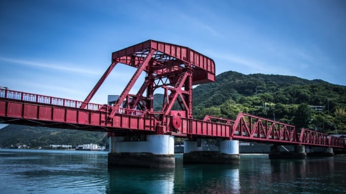 赤いトラス可動橋「長原大橋」
