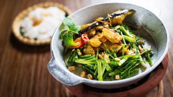 ハノイは、白身魚、新鮮なハーブ、ビーフンを使った伝統的な焼き魚料理「チャカ」で有名です。魚は外側がカリカリ、内側が柔らかくなるまで揚げられ、ディル、ネギ、魚醤、ピーナッツを添えて出されます。