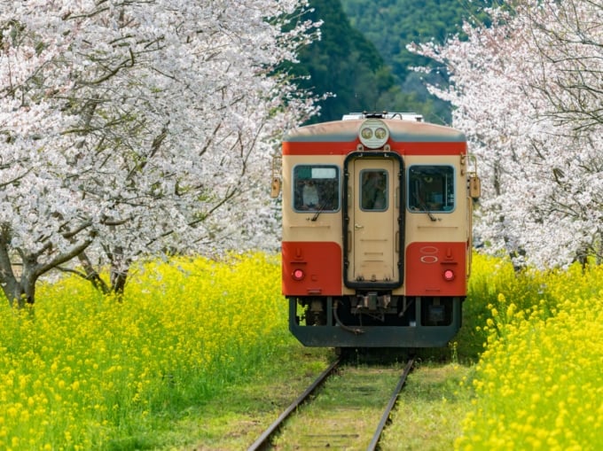 イヌミ鉄道列車は、コミナート鉄道の終点であるカズサ・ナカノ駅から出発し、山を下っています。ここでも、レイプの花と桜は美しく、観光客を喜ばせます。中間駅である玉木駅から、オタキ城、ホンダタダカツの城、その周りの城の町にアクセスできます。歴史ファンはそれを気に入るはずです。その後、列車はオハラ駅に到着します。 Isumi Railway MerchandiseもOhara駅で販売されているので、必ず見てください。オハラ駅から、限られたエクスプレス「ワカシオ」の東京駅やその他の目的地に戻ることができます。