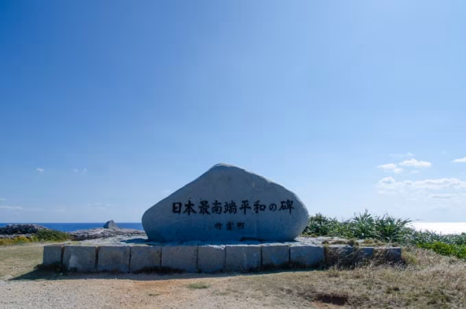 空港から日本最南端の展望台「波照間島星空観測タワー」までは徒歩約30分。すぐ近くには、一般の日本人が行ける最南端を示す「日本最南端の碑」が立っています。星空観測塔を含む島内4か所では「日本最南端の証」が購入できるほか、波照間郵便局では平日に「風景消印」を受け取ることもできます。