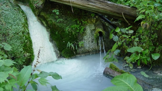 乳白色の柔らかなお湯は弱酸性で肌に優しく、そのまま飲めます。この水を飲むと消化器系の血流が促進され、便秘が解消されると言われています。