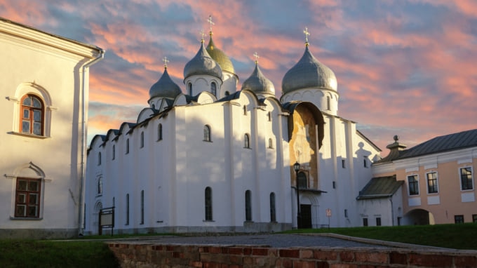 聖ソフィア大聖堂はヴェリーキイ ノヴゴロドにあるもう 1 つの有名な観光地で、ロシア最古の石造りの建物の 1 つです。この壮大な大聖堂は 5 つのドームを持つ建造物で、かつては中世にノヴゴロドの宝庫がありました。また、ノヴゴロド王子の埋葬地だけでなく、長年にわたってロシアの儀式と精神の中心地としても機能しました。大聖堂内には、奇跡的な力を持つと信じられているチフヴィンの聖母と玉座に就かれた救世主のアイコンが展示されています。
