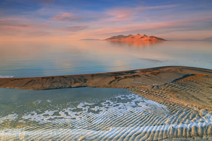 アメリカ大陸最大の塩湖であるグレートソルト湖は、4,400 平方キロメートルの広大な面積に広がっています。また、五大湖地域を除けば米国最大の湖でもあります。湖には水の流れがないため、水位は蒸発と降水量によってのみ影響を受けます。湖の塩分濃度は海水よりもはるかに高く、湖のミネラル含有量は常に増加し続けています。