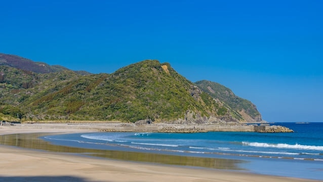 険しい山と清らかな海に囲まれた砂浜は、心地よい景色と波の音が心地よく、最高の休息を与えてくれます。近くの小高い丘にある小咲鼻展望台からも同様に素晴らしい景色を眺めることができます。トイレも完備されているので、串間ツアーでは欠かせないスポットです。