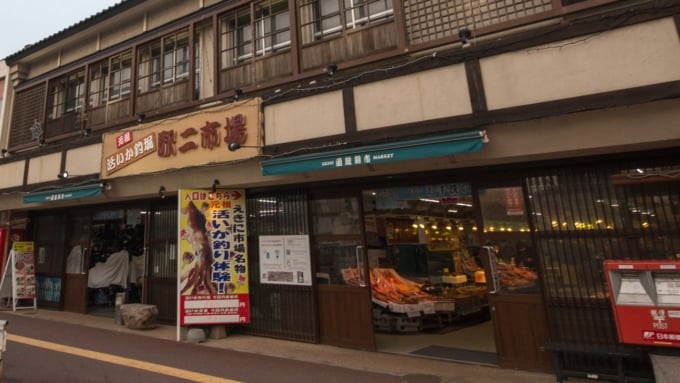 どんぶり横丁市場のすぐ南にある「駅二市場」は、函館朝市の中心に位置する屋内市場です。