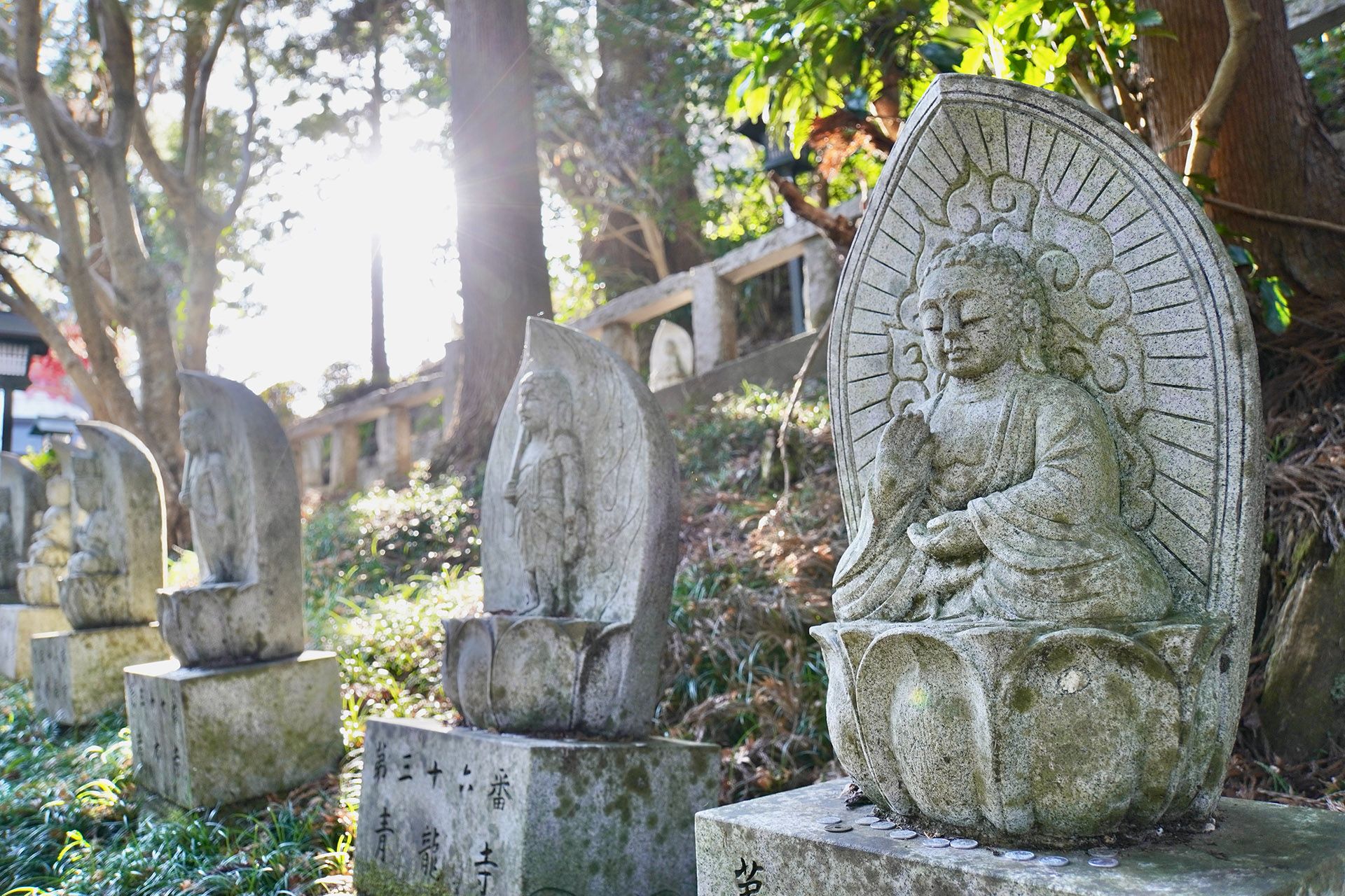 仁王門 (仏教寺院の門) の隣には、古神道の象徴があります。古神道は、縄文時代 (蝦夷とよく関連付けられていた時代) に始まった日本本来のアニミズムであり、現代神道の基礎であると考えられています。そのことと、その山への向きにより、この地もレイライン上にあるのではないかと多くの人が疑問に思っています。