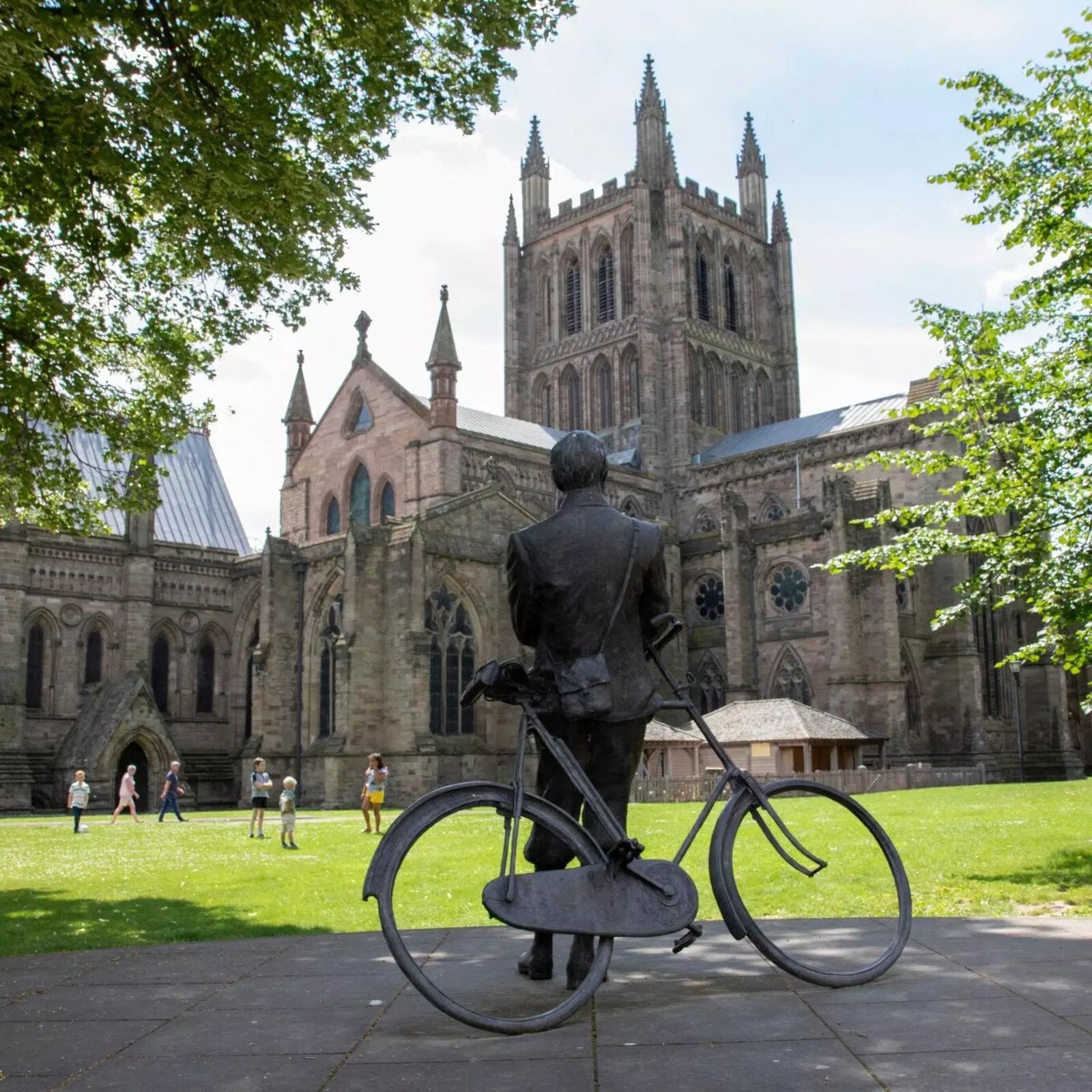 ヘレフォード大聖堂はヘレフォードシャーで人気の観光スポットの 1 つで、さまざまな建築様式を鑑賞したり、チャプター ハウスの庭園でリラックスしたり、聖歌隊の毎日のイーブンソングを聴くことができます。