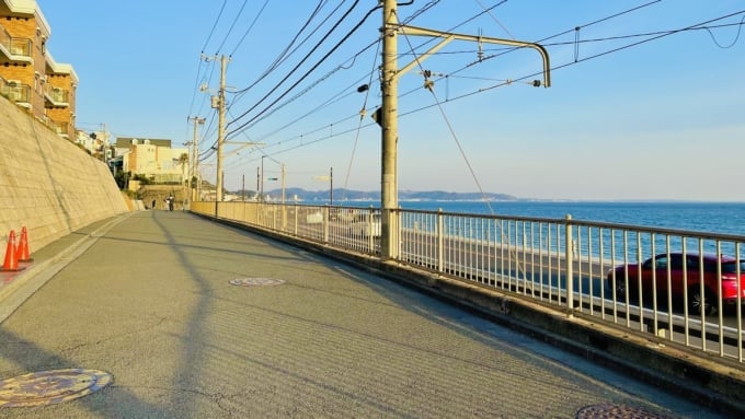 鎌倉高校前駅舎から直進し、突き当りの交差点まで進みます。