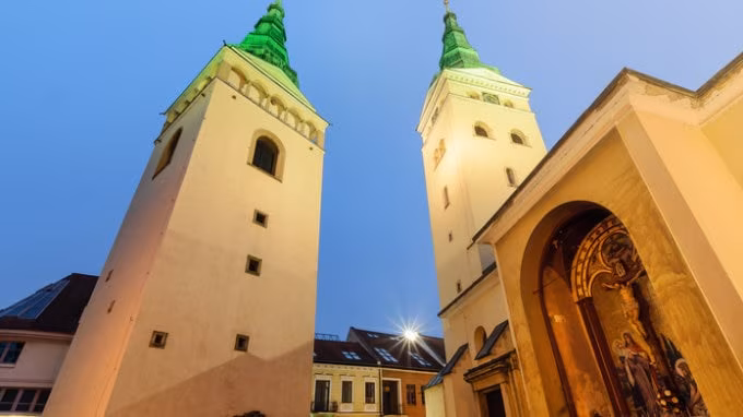夜の教会は美しくライトアップされ、昼間とはまた違った顔を見せます。ジリナを訪れる際は、日中だけでなく夜のマリアンスケ広場を散策することをお勧めします。