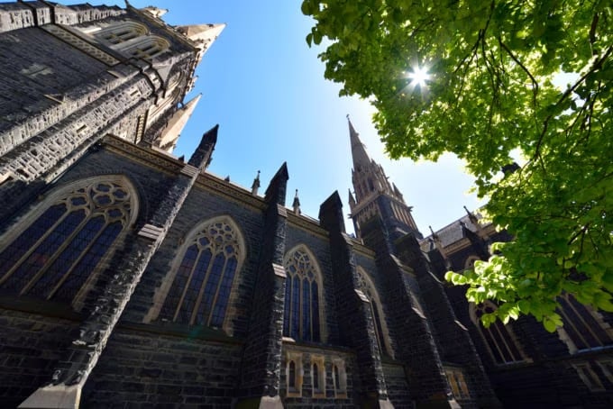 セント パトリック大聖堂 (メルボルン) は、太陽光の下では暗く見えることがありますが、青みがかったブルーストーンの外観が特徴です。ゴシック建築とブルーストーンの調和はまさに一見の価値があり、その外観の美しさは世界中からの訪問者を驚かせ続けています。