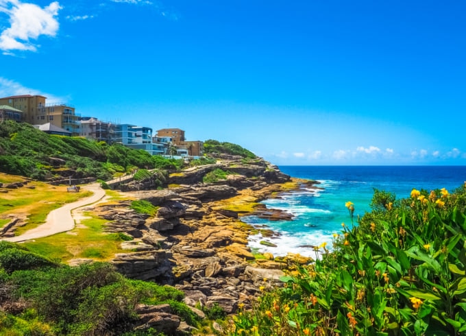 シドニー海岸の素晴らしい景色を眺めるのに最適な場所の 1 つであるボンダイ トゥ クージー ウォークは、全長 6 キロメートルにわたる海沿いの小道です。散歩中には、地元地域の崖、ビーチ、公園、湾の息をのむような景色を眺めることができます。この絵のように美しい海岸線は、海岸沿いを散策し、途中でビーチや公園に立ち寄ってリラックスするのに最適な日帰り旅行です。必要に応じて休憩に立ち寄れるレストランやカフェもあります。急な道もありますが、比較的歩きやすく、年齢を問わず歩けます。ただし、途中に階段があり、ベビーカーを持っている人にとっては少し邪魔になるかもしれません。