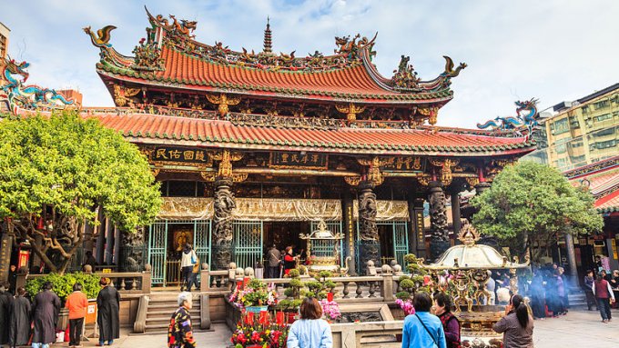 龍山寺はおそらく台北で最も有名な寺院です。何百もの彫像があり、伝統的な中国の 4 つの建物の中庭と宮殿建築がデザインに組み合わされています。この寺院は国家二次遺産に指定されており、台湾最大かつ最古の寺院の 1 つであり、台湾の信仰、芸術、建築を探索するのに最適な場所です。
