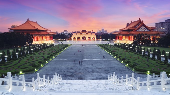 この人気のある壮大な記念碑は、権威主義的指導者蒋介石への賛辞として使用されています。ホールの青い屋根には、新古典主義様式の建築がいくつか見られます。蒋介石が亡くなった時の年齢に相当する 89 段の階段を上って、本堂に向かう入り口が続いています。館内には工芸品博物館があります。この博物館では、日常生活の記事や蒋介石の 2 台のキャデラック、さまざまな資料が展示されています。