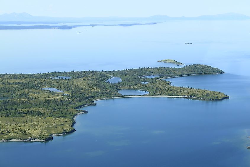 アラスカ州のイリアムナ湖は州最大の湖であり、米国で最も深い湖の 1 つであり、水深は 988 フィート (301 m) に達します。アラスカ南西部の約 1,000 平方マイルにまたがるこの川は、クヴィチャク川を経てブリストル湾に流れ込み、世界最大のベニザケの養殖場として機能しています。冷たくて貧栄養な海は貴重なニジマス、グレイリング、サケの漁業を支えており、世界中から釣り人が集まります。イリアムナは、数少ない淡水ゴマフアザラシの生息地でもあり、神秘的な「湖の怪物」についての地元の伝説が古くから伝わる場所でもあります。