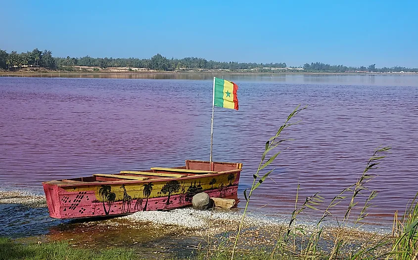 レトバ湖、またはラック ローズは、セネガルのキャップ ヴェール半島にある小さな超塩分湖で、ドナリエラ サリナ藻によって作られる鮮やかなピンク色で有名です。塩分濃度が約 40% に達するその浮遊水は、他の有名な塩湖に匹敵し、主要な職人製塩産業を支えています。毎年約 3,000 人の労働者が数万トンを収穫し、塩水の中を歩きながらシアバターで肌を守ります。 2022 年の深刻な洪水により、一時的に湖の色が失われ、塩の山が損傷しましたが、2025 年までに部分的に回復し、依然としてユネスコの世界遺産候補に残っています。