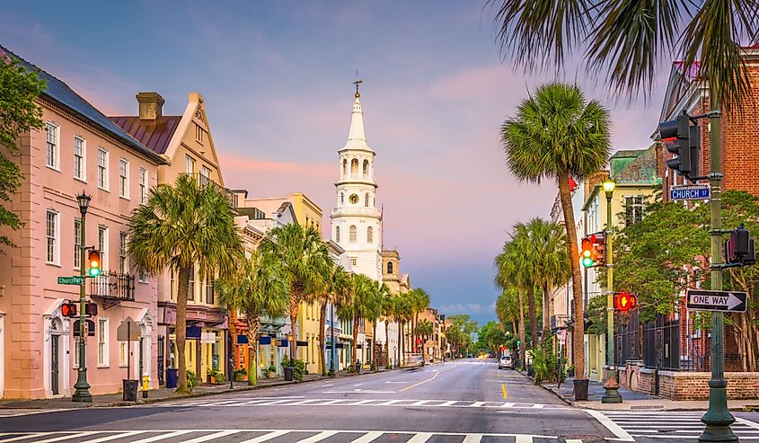 サウスカロライナ州チャールストン、歴史的なフレンチ クォーターの街並み