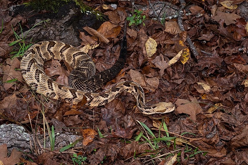 木の葉を這うガラガラヘビ。