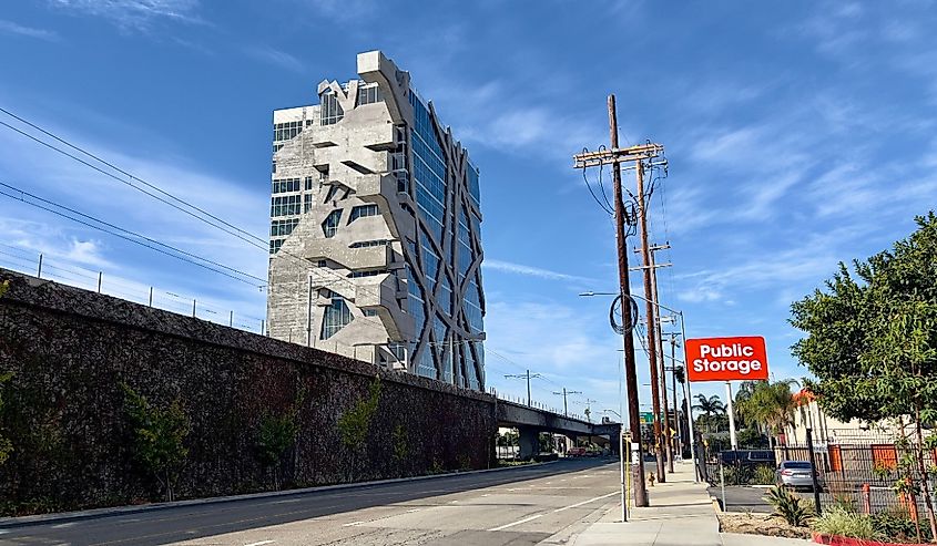ロサンゼルスのウェストアダムスにあるエリック・オーウェン・モスが設計した 16 階建てのオフィスタワー。画像クレジット:vesperstock(Shutterstock経由)