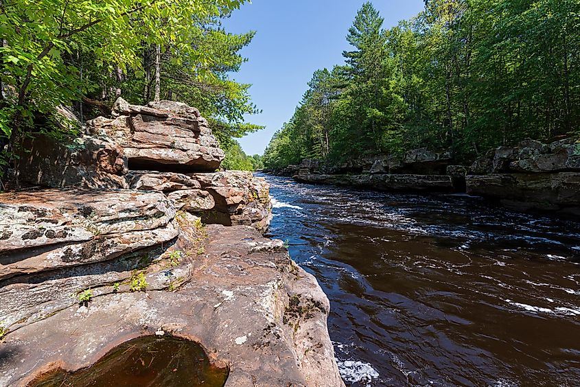 ミネソタ州サンドストーンにある州立公園の禁止のケトル川。