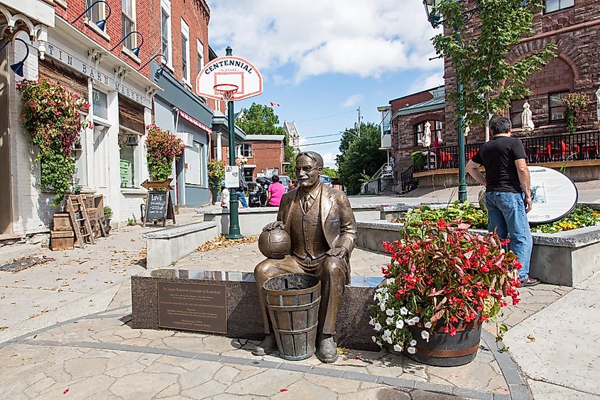 アルモンテにあるバスケットボールの発明者、ジェームズ・ネイスミス博士の像。マーティン・グッド/ Shutterstock.com