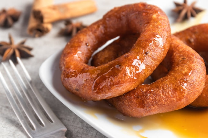 典型的なペルーのストリートデザートであるこれらのドーナツ型のスナックは、サツマイモとカボチャを揚げて甘いシロップをかけたものです。それらはスペインのブニュエロスに由来します。これは、ペルーで同じ材料を使って作るには高価であった、生地から作られた同様の揚げた甘いスナックです。代わりに、サツマイモやカボチャなどの安価な地元の食材が使われ、それがすぐに人気を博し、今日では全国各地で見かける人気の甘いお菓子が誕生しました。