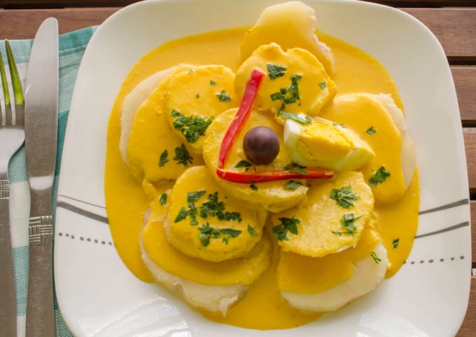 卵、フレッシュチーズ、ジャガイモの完璧な組み合わせを特徴とするペルーのおいしい家庭料理のもう 1 つです。クリーミーなチーズソースにアジ・アマリロ・ペッパーの風味が加わり、相性抜群です。通常、この料理はスターターとして提供されますが、一度この心地よい味を試したら、もう注文せずにはいられないでしょう。