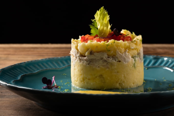 このペルー料理は、そのユニークな外観から最近人気が急上昇しており、インスタ映え写真にぴったりです。カウサは、マッシュポテトとさまざまな具材を重ねた料理で、最も人気のあるものの 1 つは、沿岸部の首都リマ発祥のシーフード マヨネーズです。もう 1 つの一般的な詰め物やトッピングはアボカドですが、レストランやシェフが独自のアレンジを加えているため、全国各地であらゆる種類のバリエーションが見つかります。上手に作れば、見た目と同じくらい信じられないほどの味わいになり、2枚の心地よいマッシュポテトの間に風味が爆発します。