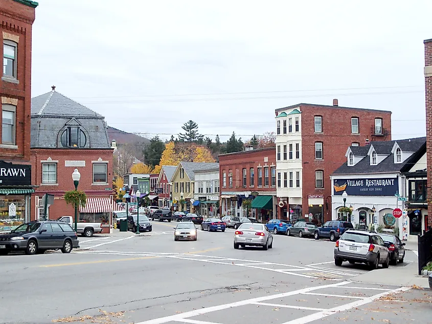 メイン州カムデンのダウンタウンの雨の日。クリスティ・ブロヒン/Shutterstock.com。